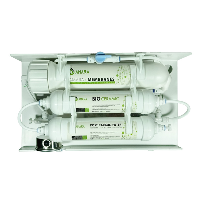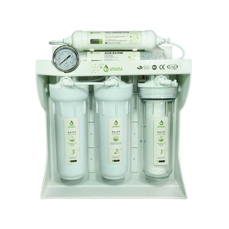در کلاس دستگاه های اقتصادی می توان به دستگاه تصفیه آب آمارا مدل A600 اشاره نمود. این دستگاه تصفیه آب دارای ۷ مرحله فیلتراسیون می باشد. این سیستم از روش اسمز معکوس جهت فیلتراسیون بهره گرفته است و دارای پمپ با کیفیت فلزی با سیم پیچ سنگین ایرانی با ظرفیت ۸۰ گالن و فشار ماکزیمم ۱۲۰PSI می باشد. مخزن ذخیره دستگاه آمارا مدل A600 با نام تانک مکس بی شک با کیفیت ترین مخزن تولید ایران می باشد. تانک مکس با ذخیره ۴ گالن و ظرفیت اسمی ۱۵ لیتر در کنار این دستگاه عملیات ذخیره آب را انجام می دهد. میزان ذخیره واقعی این مخزن (گالن) حدود ۱۰ لیتر می باشد. در مجموع تفاوت تصفیه آب آمارا مدل A600 نسبت به مدل A700 بهره گیری از شاسی فایبرگلاس و پمپ و مخزن ایرانی می باشد و الباقی متریال این دستگاه همچون مدل A700 ساخت تایوان می باشد. دستگاه تصفیه آب آمارا مدل A600 دارای هوزینگ های پیش تصفیه تک اورینگ با متریال کره ای و تحمل فشار ۲۲ بار و هوزینگ ممبران با متریال کره ای می باشد. این سیستم دارای آداپتور اورجینال تمام مس تایوان و اتصالات کوئیک کانکت فیتینگی، شیر برقی تمام مس و سوئیچهای لوپرشر و هایپرشر جت سان تایوان، شیر برداشت اهرمی استیل تایوان، پک نصب کامل شامل اتصالات انشعاب از آب شهری به صورت برنجی، آچار تعویض فیلترها، بست کمربندی خروجی فاضلاب، شیر مخزن، دفترچه زمان بندی تعویض فیلتر ها و شش متر شلنگ می باشد.